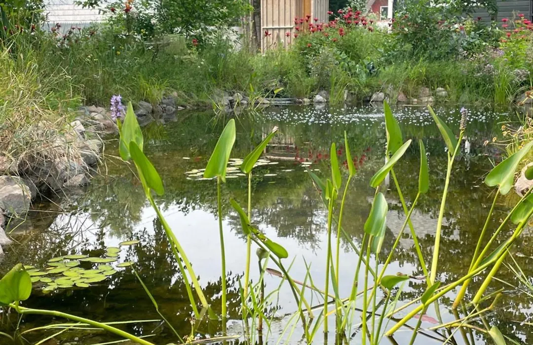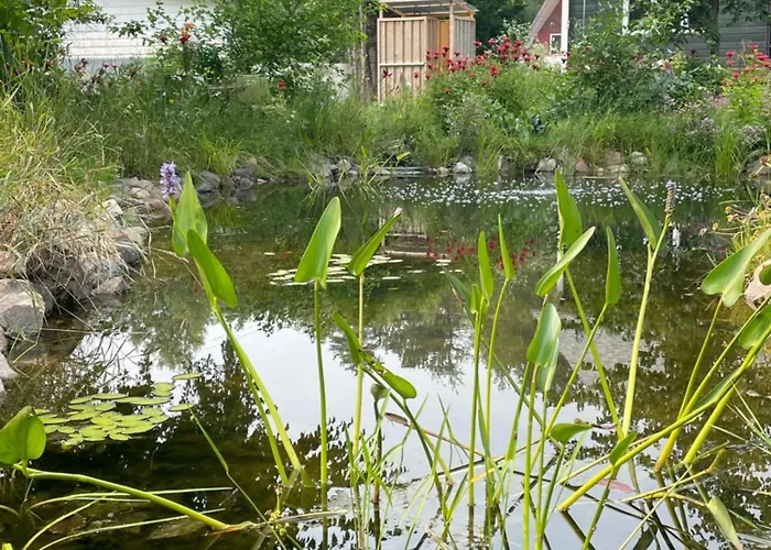 מטבח מיני בנוסף ברשות האורחים. ישנה גם כן סלון משותף עם נופים של גינה.